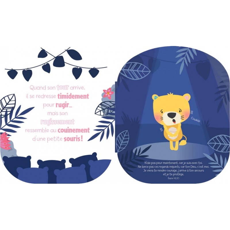 Ce livre adorable est aussi une peluche très douce et réconfortante pour les petits qui pourront s’y blottir et la serrer dans leurs bras. Un texte facile et agréable à lire, des citations bibliques et d’adorables illustrations se combinent pour avancer sur le chemin du courage et de la confiance en soi.