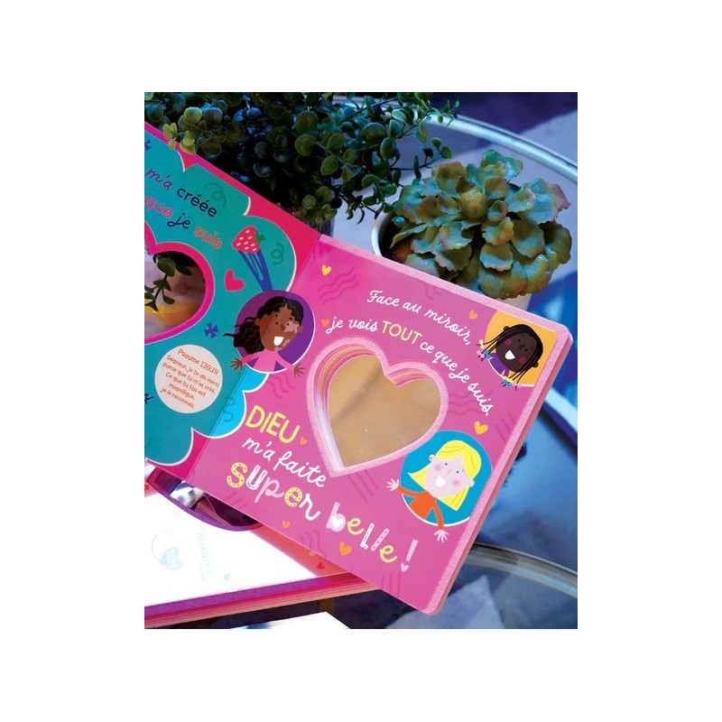 À travers un texte dynamique plein d’encouragements, des versets bibliques et des illustrations où chacune pourra se retrouver, ce livre permettra de s’amuser avec le miroir pour reconnaître la beauté que Dieu a mise en chacune, d’introduire en douceur la prière et la Bible, et bien sûr, de partager un moment privilégié entre parent et enfant.